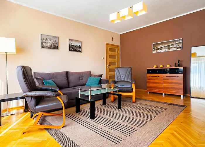 The apartment includes self-catering facilities, such as an equipped kitchenette with a refrigerator, a stove top, and kitchenware. Goszczynskiego 01 bus stop lies within a few blocks of this 38 m² apartment.
